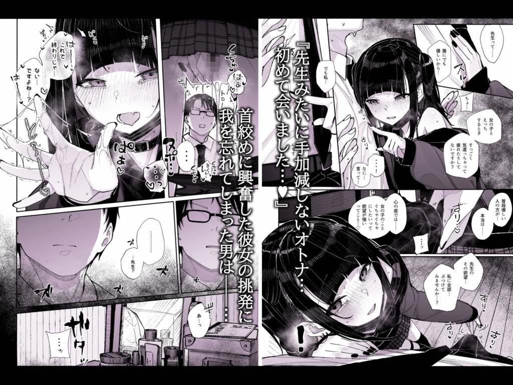 Keiichiro es un maestro amable que ama trabajar con niños. Cierto día, él visita a Noa, su nueva alumna problemática que hizo renunciar a sus anteriores maestros privados. Keiichiro no puede evitar notar que Noa es una chica gyaru con mucho maquillaje y piercings, pero lo que más llamó su atención fue que ella tiene una gran marca en su cuello. Durante su clase, Noa hace una impactante revelación, a ella le encanta ser ahorcada y quiere que su maestro la haga suya a la fuerza mientras aprieta su delgado cuello con sus enormes manos adultas.