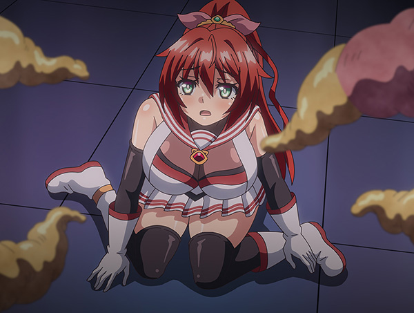 Justo en ese momento, al entrar a una tienda del mercado comercial, ¡se topa con un kaijin de Zydarg! El monstruo que busca deliciosa energía la captura y… ¿¡devora a Pony Celes!? Le meten tentáculos por todos sus orificios y su poder siendo drenado… ¡otra vez está en un aprieto!