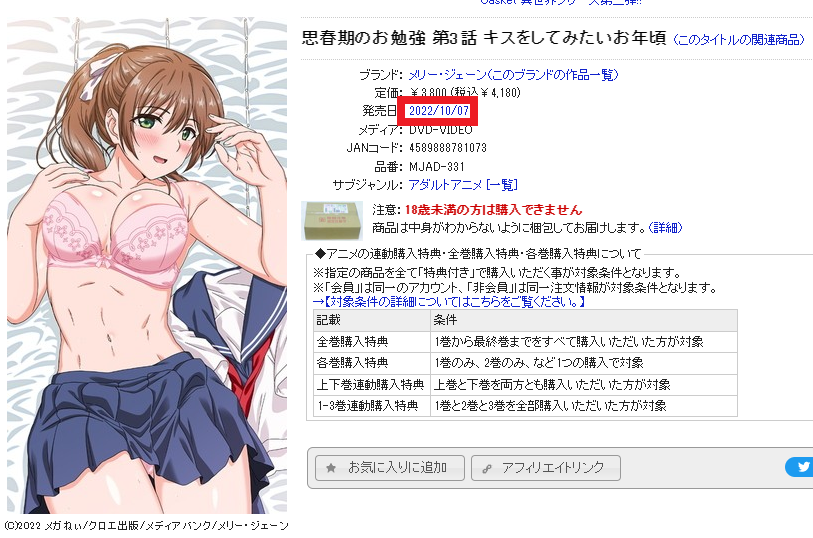 Y más retrasos locos de Mary Jane porque ya varias tiendas cambiaron la fecha de estreno del tercer capítulo de Shishunki no Obenkyou.
