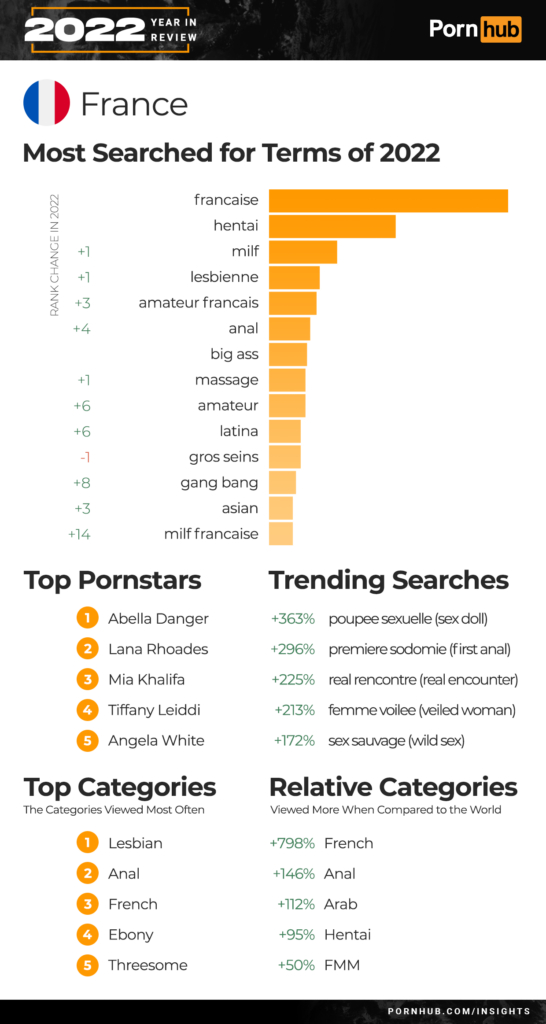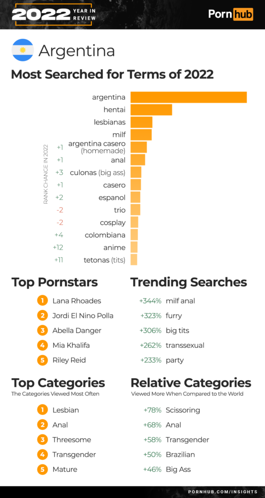 Por otra parte, en Estados Unidos, Argentina, Colombia y Francia, «hentai» es el segundo termino más buscado.