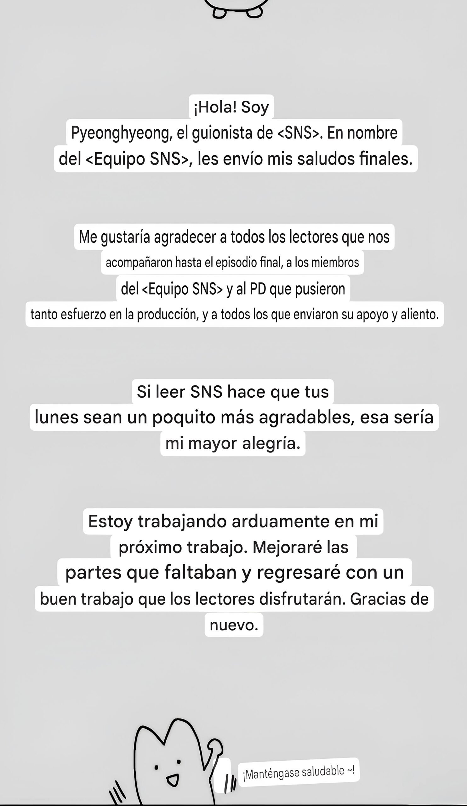 Así terminó el manhwa «Redes Sociales» un final abierto, personalmente no me gusta este tipo de final, Ojala hagan una continuación, pero bueno es lo que hay.