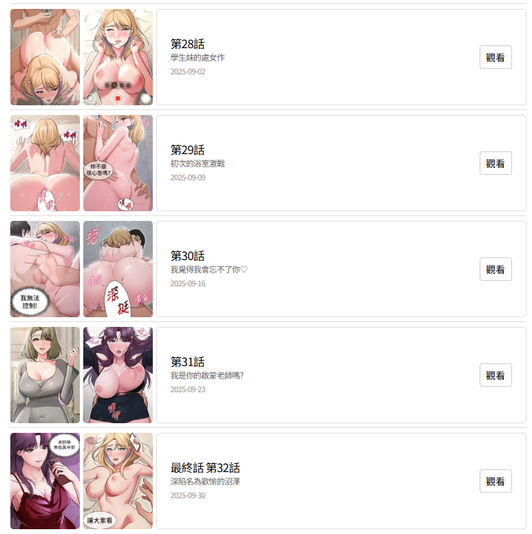 El 30 de septiembre la pagina oficial de Toptoon.net público el ultimo capítulo del manhwa para adultos «Redes Sociales» o «SNS» con 32 capítulos hasta el momento.