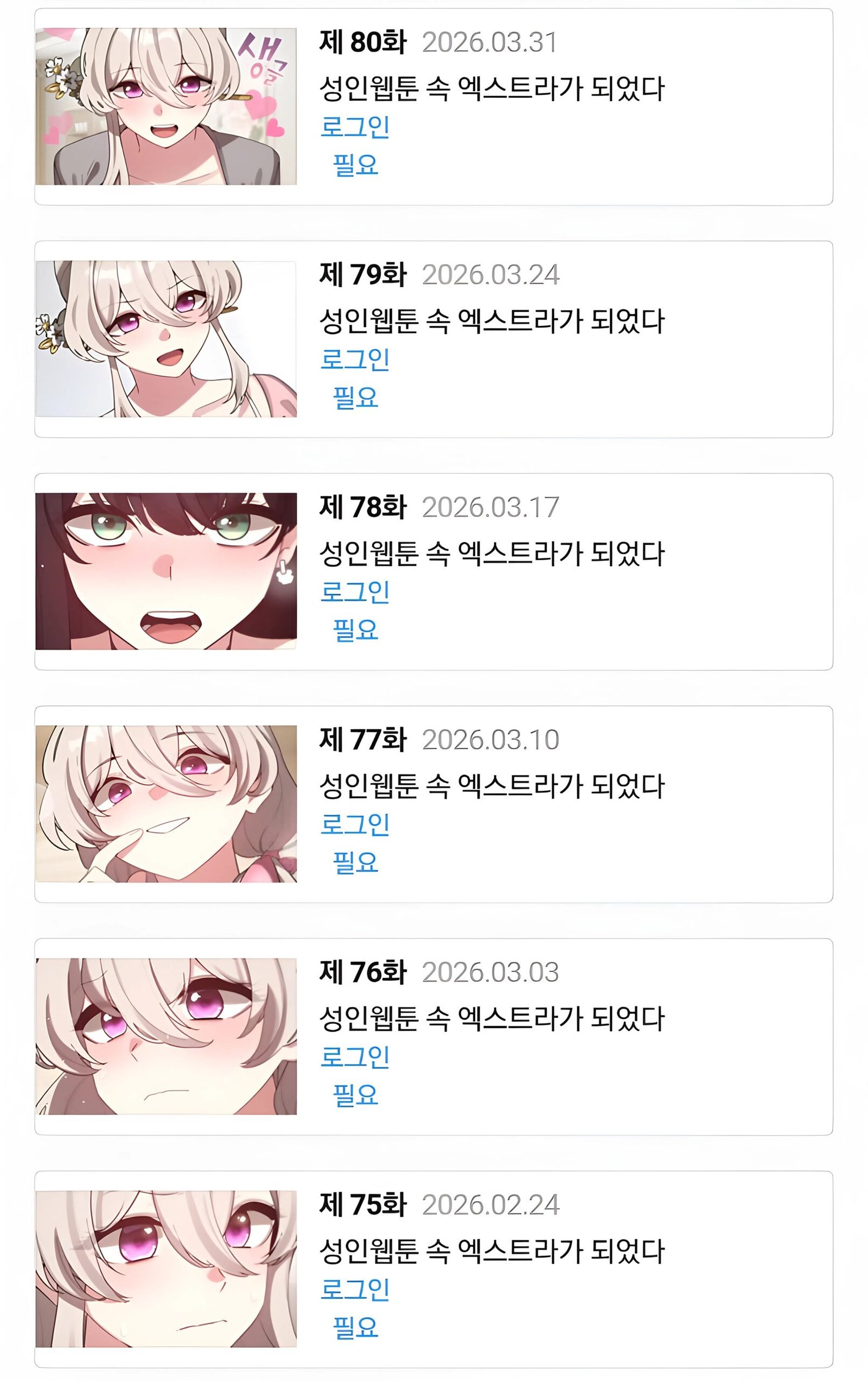 El 31 de marzo finalizó el manhwa +18 «Como triunfar en el mundo del comics» o «Me convertí en un NPC de un manhwa» con un total de 80 capítulos en la pagina oficial de Toptoon.