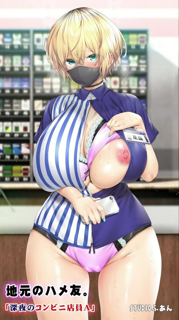 En Jimoto no Hame Tomo. «Shinya no Konbini Tenin A» el esposo sale muy tarde del trabajo por cubrir a un compañero. De regreso a casa se topa con el konbini donde trabaja Aki, una hermosa chica joven que también es su amiga sexual. Cuando entra al local, ella lo recibe de mala manera porque él siempre deja sus mensajes en visto y nunca le responde. Después de que se disculpa, la chica lo perdona y tienen sexo exhibicionista por todo el lugar.
