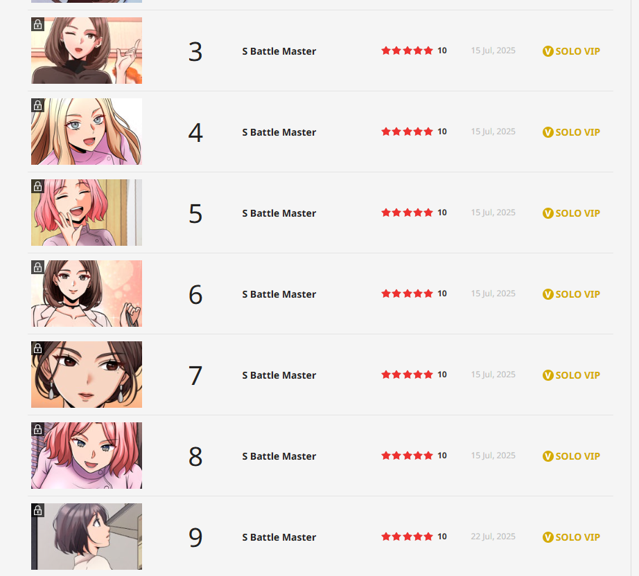 La plataforma Toomics en español estrenó el pasado 15 de julio el Manhwa +18 «S batalla Master» con 9 capítulos hasta el momento.