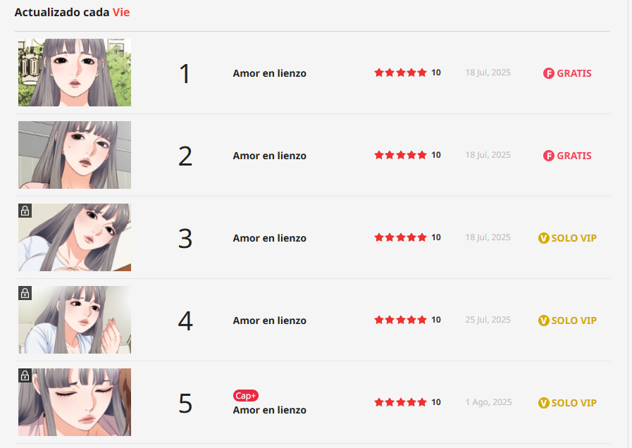 El pasado 18 de julio la página oficial Toomics en español estrenó el manhwa +18 «Amor en Lienzo» con 5 capítulos hasta el momento.