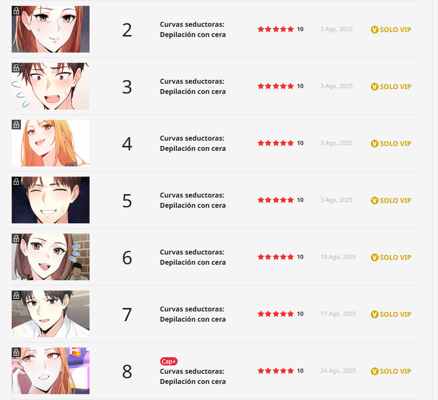 El pasado 3 de agosto la página oficial de Toomics estrenó el Manhwa +18 «Curvas Seductoras: Depilación de ceras» o «Las jefas Tetonas del salón de depilación» con 8 capítulos hasta momento.
