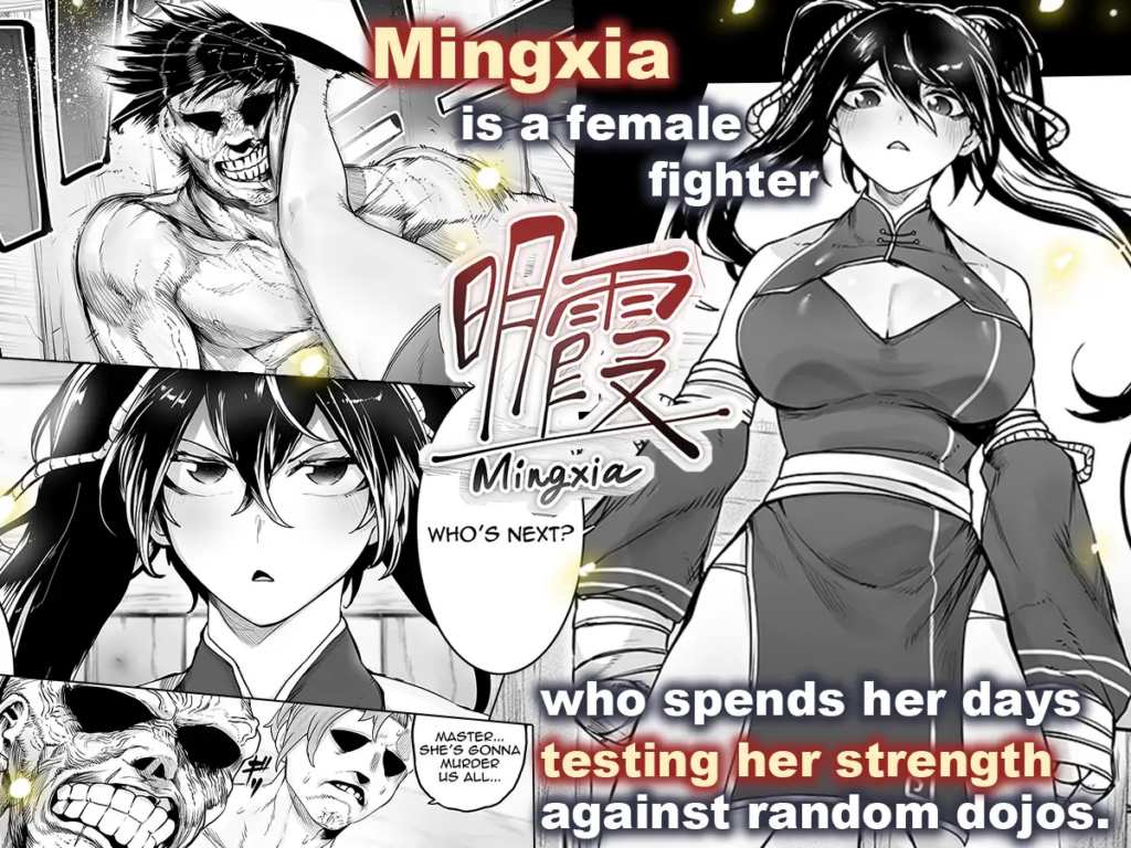 Mingxia es una luchadora que se la pasa entrando a dojos para probar su fuerza. Un día, se enfrenta al maestro de un dojo y mientras tenían su pelea, su ropa se rompe y baja la guardia. Cuando esto ocurre, otro hombre la ataca por la espalda y la ata con fuerza. Una vez que ella está a su merced, los hombres de ese dojo abusarían sexualmente de Mingxia sin descanso.