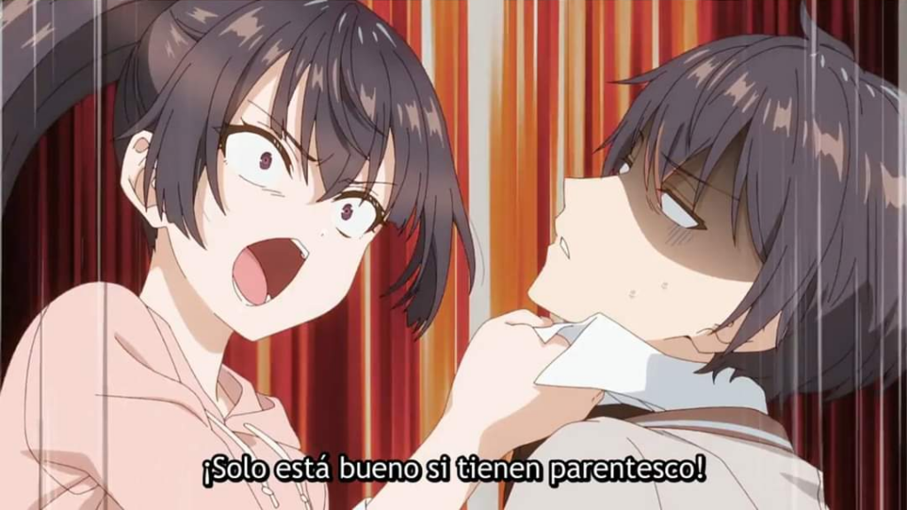 A pesar de todo esto, hay algo que no nos cuadra. Según la sinopsis, la madre es en realidad su madrastra, lo cual es bastante raro, ya que en el eroge nunca se menciona que lo sea. Me puse a investigar y, en la información oficial del eroge, no dicen nada al respecto. Esto me lleva a dos posibles conclusiones: o bien, en la adaptación animada decidieron cambiar el rol de la madre por el de madrastra por alguna razón, o en el eroge el protagonista es su hijastro, pero esta información está oculta o no se menciona explícitamente. Sea cual sea el caso, la siguiente imagen muestra mi opinión sobre esto: