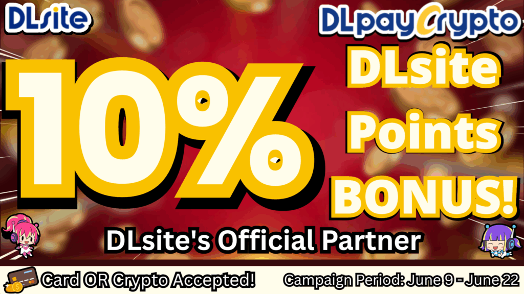 ¡Marca tu calendario! Del 9 al 22 de junio de 2025, DLpay Crypto tendrá una promoción especial. Cuando compres tus puntos de DLsite a través de su servicio durante este período, ¡recibirás un 10% extra en puntos de bonificación!