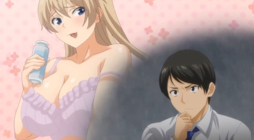 Después de que el amigo calmara a la waifu con un almuerzo gratis, ella de nuevo se pone juguetona y le restriega sus melones poniendo un carton de leche en medio de ellos para que lo beba. Su amigo se molesta otra vez por su comportamiento y al pararse de su asiento la chica cae llenándose toda le leche. Ella le dice que como fue su culpa que esté ahora así, debe de limpie sus tetas, por lo que no tiene más remedio que hacerlo. Mientras estaba en ello, de nuevo la chica le restriega sus melones y él ya no aguanta más, se pone a jugar con sus sandias hasta que terminan teniendo sexo.