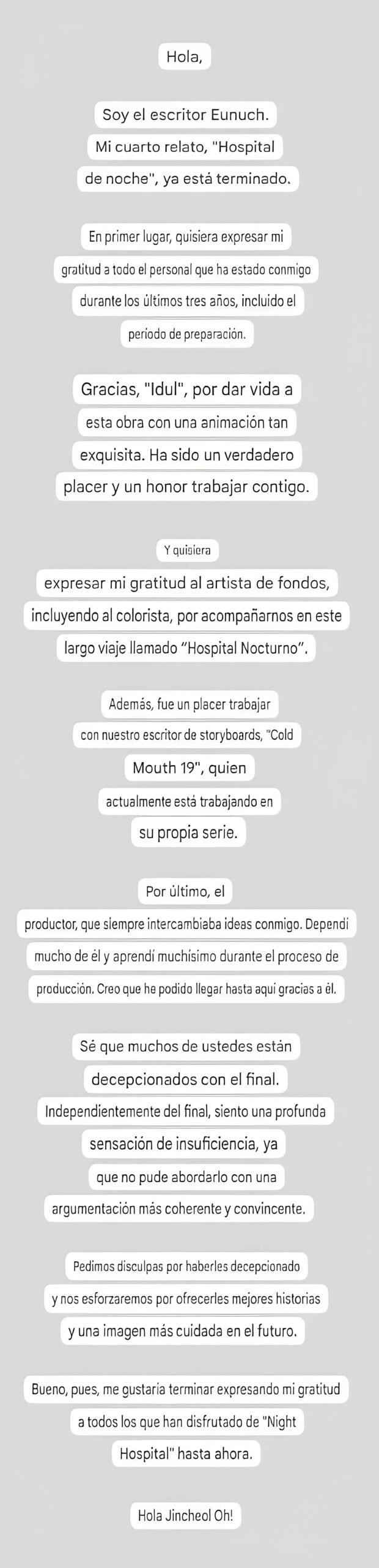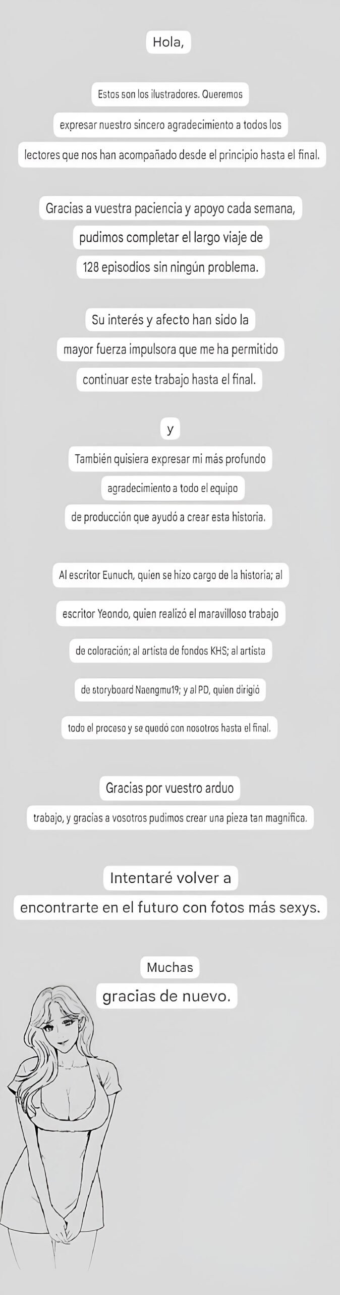 Bueno los creadores de este manhwa se despidieron con estas palabras ojala su artista regrese con un mejor y nuevo proyecto.