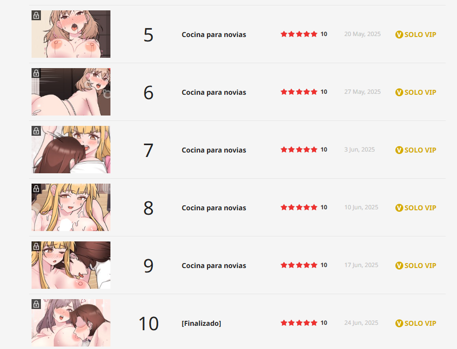El pasado 24 de junio se había terminado el manhwa +18 «Cocina para novias» o «Clases de cocina para esposas» con un total de 10 capítulos.