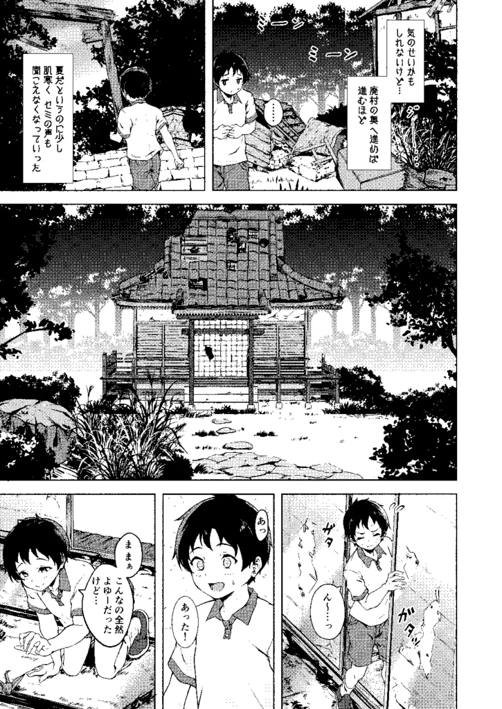 Un niño es persuadido con burlas de su primo para que vaya a un pueblo abandonado donde aparece Misaki-sama, un espectro maldito. Cuando llega al lugar, entra a un santuario abandonado donde se encuentra una figura de origami en el piso delante de un espejo. Al acercarse sale de ese espejo Misaki-sama, el espectro de los rumores que secuestra personas para devorarlas. Cuando ve su imponente figura se desmaya del susto, pero al despertar ve a esa mujer desnuda y lista para abusar sexualmente de él.