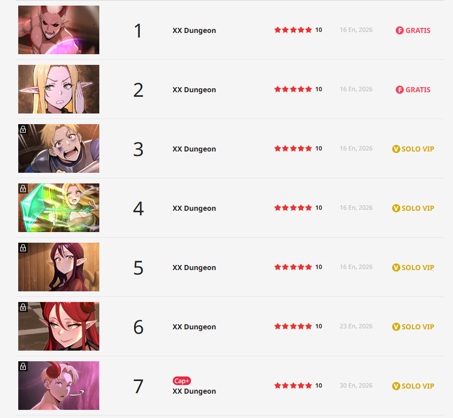 Si bien este manhwa fue estrenado el 16 de diciembre del 2025, El pasado 16 de enero se estrenó el Manhwa +18 XX Dungeon en la pagina oficial de Toomics en español con 7 capítulos publicados hasta el momento.